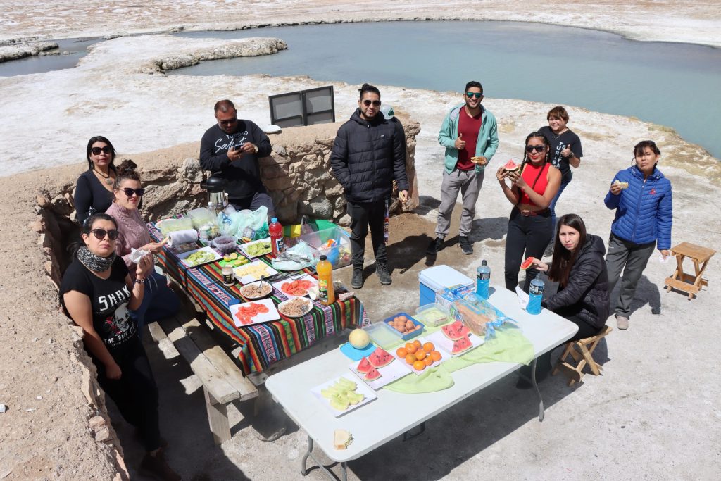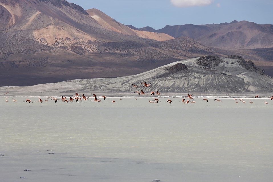 El Monumento Natural Salar de Surire tiene una altitud de 4.245 metros sobre el nivel del mar (msnm) uno de los principales puntos de anidación de flamencos en Sudamérica donde podrán avistar flamencos ,vicuñas, llama, alpaca, Guallatas, el suri o ñandú del norte, la perdiz de la puna, entre otro sin fin de especies. En lo que a la flora se refiere, la más frecuente es la tola, que se encuentra en la precordillera sobre los 3000 metros sobre el nivel del mar (msnm) la paja brava y el bofedal. Rodearemos este tremendo y hermoso Salar hasta llegar a las Termas de Polloquere ubicadas en el salar aproximadamente 181 Km. de Arica, se encuentran aproximado a 4.300 metros sobre el nivel del mar (msnm). Las Termas de Polloquere son reconocida como fuentes hipertermales de agua medicinal y recomendadas para el reumatismo y lesiones lumbares. Podrán disfrutar de los baños termales a una temperatura de entre 40 a 60°C mientras nuestro equipo de trabajo prepara un exquisito y fresco picnic al aire libre en Altiplano Chileno para recargar energías y preparar nuestro retorno a la ciudad de Arica.